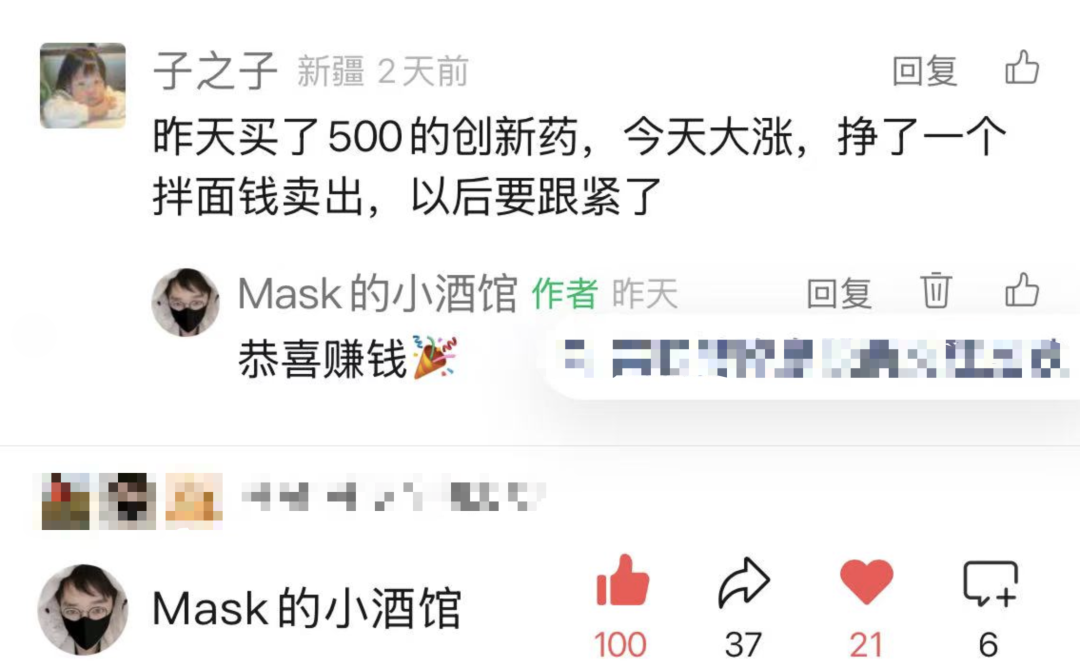 除了白酒,星球里面说得东西还很多,比如这几天的创新药,有星友也说有收获了。